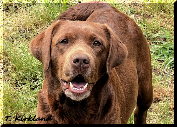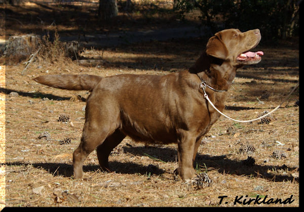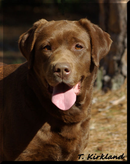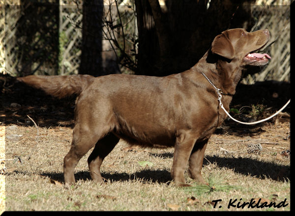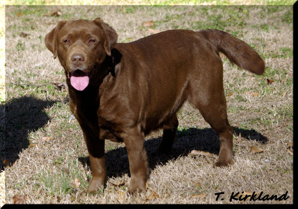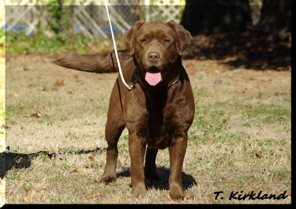 BRASSBRIGADE'S BABY RUTH (BOSS GCHB Rycroft's Smart Remarks CGC x Brassbrigade's Boom Chocolatta)--We are so happy to have this lovely girl! She has so much personality in a beautiful chocolate package. We call her our "go fetch it" because she absolutely loves to retrieve! She's the ultimate snuggler and is very attentive. Ruthie has a lovely head with correct eye color and plenty of coat and bone.